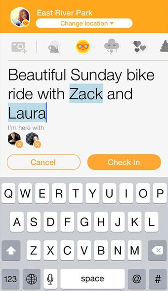 Com o Swarm, é mais fácil fazer check-in em comparação com o app original do Foursquare para iOS. Você simplesmente precisa clicar no botão Atualizar para que o Swarm detecte sua localização. Adicionalmente, você pode adicionar um comentário para dizer o que está fazendo, ou selecionar um dos ícones que melhor descreve seu status.