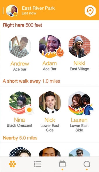 O app é uma forma rápida de verificar quais dos seus amigos do Foursquare estão próximos de você no momento. Se você quiser encontrá-los, é só enviar uma mensagem rápida e marcar um encontro.